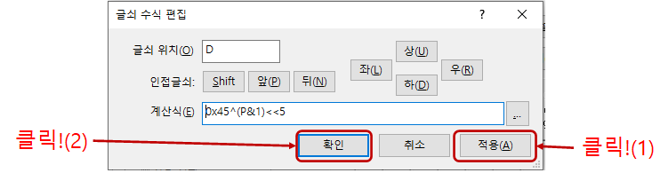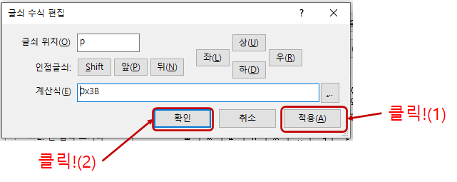 적용을 먼저 클릭하고 확인을 클릭합니다.