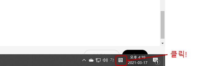 그리고 위에서 가리키는 것과 같은 '한'을 클릭합니다.