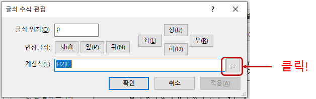 계산식은 건들지 말고 우측의 ...을 클릭합니다. 그럼 다음과 같은 창이 열립니다.