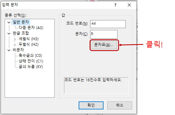 그리고 일반 문자를 클릭하여 문자표를 클릭합니다.