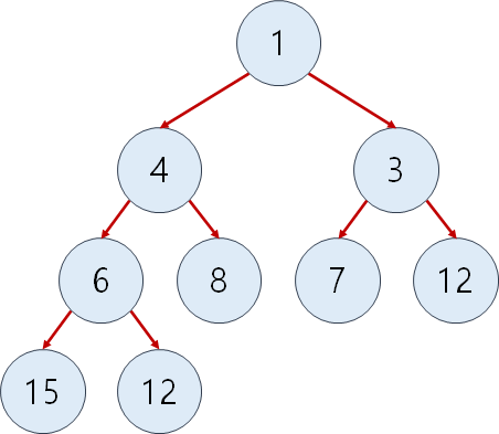 위에서 말하는 값은 정말로 값을 의미하기도 하고, 우선순위를 의미하기도 합니다. 힙을 그림으로 표현하면 다음과 같습니다.