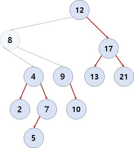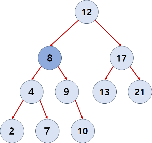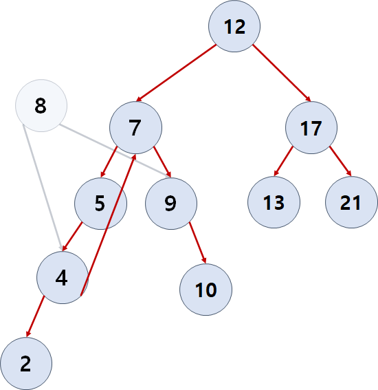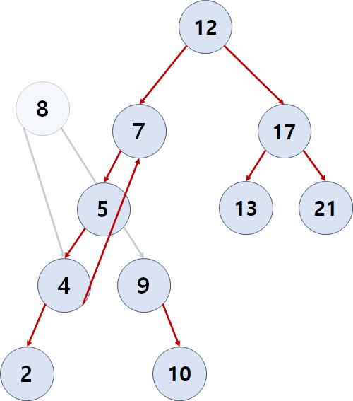 이 상태에서 노드 8을 삭제하려고 합니다.