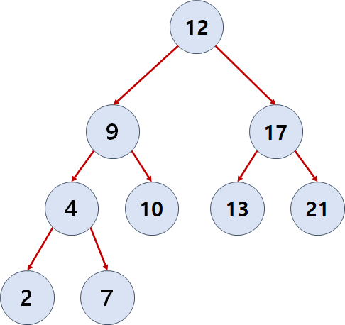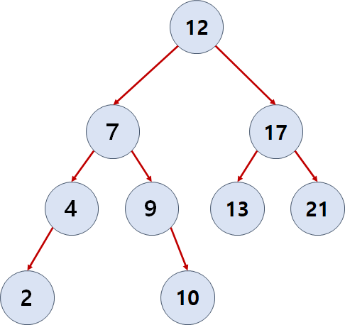 - 루트 노드의 키가 오른쪽 서브 트리를 구성하는 어떠한 노드의 키보다 작다.