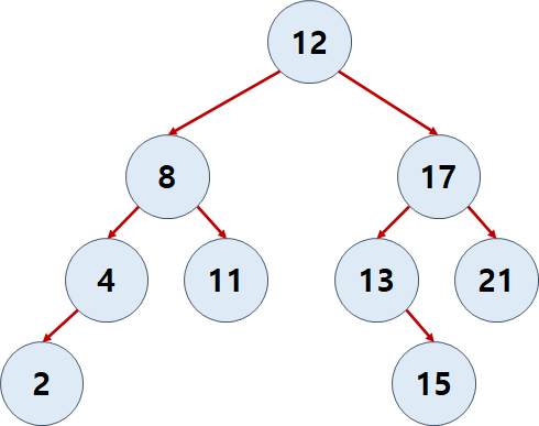 이번에는 15가 17보다 작습니다. 따라서 왼쪽 자식 노드로 이동합니다.